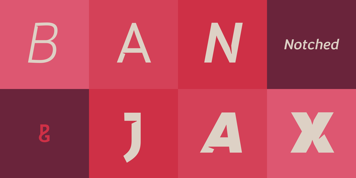 Banjax Notched is a dynamically restyled version of the original Banjax humanist sans serif typeface.